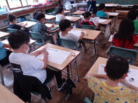 5時間目、3年生は漢字ドリルの取り組んでいました。