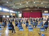 今年はコロナ禍によって、学級ごとの宣言と、全校を3学年ずつ2回に分けた集会となりました。