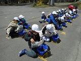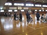 総合的な学習の時間に6年生が学級ごとに体育館で車椅子体験を行いました。