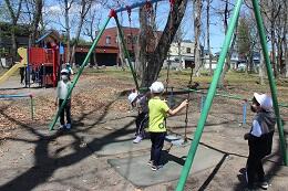 グリーンベルトを調査し、遊具を実際に体験しながら調べてみました。