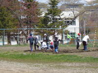 写真右はたんぽぽ学級が畑おこしをしている様子です。