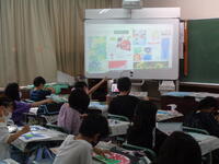 千歳市ではいち早く電子黒板を市内の小中学校全教室に設置されており、