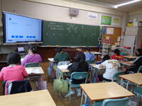 わり算の学習で、割る数が2けたとなり、商の検討をつけるのが難しい箇所ですが、どのクラスでも熱心に問題に挑戦していました。
