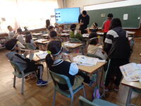 3時間目、4年生は3つの教室に分かれて算数の概数(がいすう)の学習を行っていました。