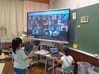 4時間目、1年生はタブレットを用いてビデオ通話の練習をしていました。