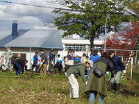 その後、ふれあい農園の収穫と畑じまい(ビニルハウス撤去)を行いました。