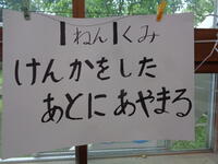 1年生が学校で仲良く過ごすための標語を写真のように決めて、昨日の集会で発表しました。