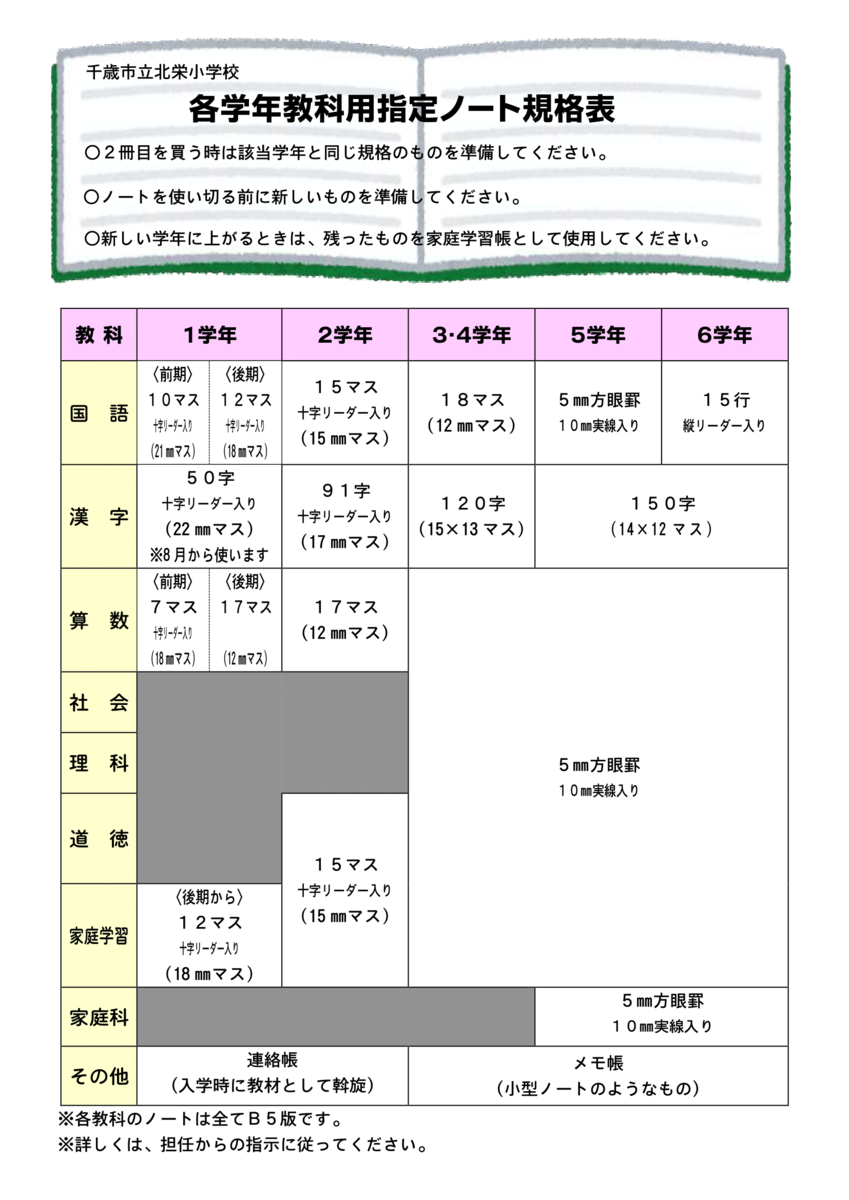 使用するノートの規格