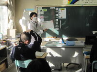 2時間目の生活単元学習の時間に、中学生が小学生の遊びの時間に参加して、一緒に遊んでいます。小学校時代の担任の先生やお世話になったヘルパーさん、そして後輩達に、お兄さん、お姉さんぶりを見せたいという中学生の思いが伝わってきました。また、中学校の別なクラスでは、午後に予定されている小学生への読み聞かせの練習をしていました。少しどきどきしながらも楽しみな様子でした。