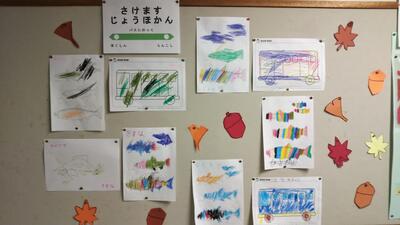 小学校の廊下にはハロウィンにまつわる作品が並んでいます。みんな少しずつ違っていて個性的で、見ていて楽しくなります。