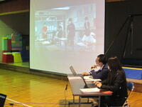 本日放課後、公開授業を振り返る教員研修を行いました。先日の小学校での公開授業と同様、小中教員が合同でよりよい支援策について意見を出し合いました。公開授業の一部を切り取った動画を視聴したうえで、それぞれの意見が全体の中で把握できるようにICT(タブレット)を使いながら、話し合いました。