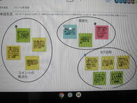 教室掲示するめあての表に貼り付ける自分の写真などを保存先のドライブで確認する作業やワークシート代わりのジャムボードアプリにめあてを書き込む準備をしていました。