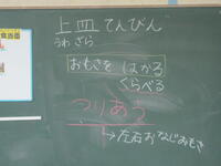 1枚は、国語の学習で、言葉と具体物を結びつけることを目標にかるたを題材にしています。いつもは低学年の子どもたちがが下校後、中学年の子どもたちで学んでいた内容を、今日初めて1、2年生を交えて行っていました。