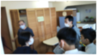 体育館に全児童生徒が集まったあとに、旧体育館を活用して、放課後ディサービスのスタッフさんに引き渡す子どもたちと保護者の方に引き渡す子たちなど、それぞれのグループに分け、引き渡し口も二箇所にして密を避けましした。