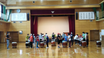 小学校では定期的に和太鼓の学習を行っています。今年は11月に予定している開校50周年記念式典で市内の北ガス文化ホールをお借りして行うことになってていますが、その中でも披露する予定になっています。