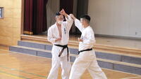 礼の仕方、空手の基本動作に取り組み、ほどよい緊張感とともに空手の小気味いい動きを体感し、授業後には気持ちのよう表情が多く見られました。
