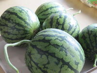 それぞれ一つずつ小玉スイカを抱きかかえて教室に戻ってきました。
