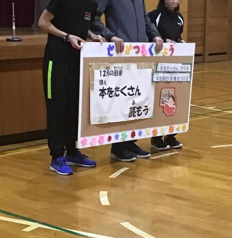 校長先生からは、イラストを見せながら「うがい・手洗い・温かい服装」で風邪をひかないようにといった健康面のお話しを、児童生徒会からは今月の目標『本をたくさん読もう』の発表はありました。生徒会長からは「図書室で気に入った本を見つけて、読書の習慣をつけましょう」とお話しがありました。