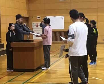 続いて、先月行われた生活向上週間の表彰が行われました。今年度2回目の生活向上週間のテーマ「苦手な事もがんばってみよう!」に、各学級一丸となって取り組みました。