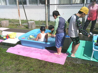 小)水泳学習、水遊び 投稿日時 : 09/10 編集長 カテゴリ: 夏の期間行っていた北栄小学校プールをお借りしての水泳学習、本校玄関付近での水遊びの学習ですが、本日が最終日の予定です。 晴天の下、楽しく実施できました 夏も終わりに近づきつつあります。 今後も季節に応じた学習活動を実施してまいります。