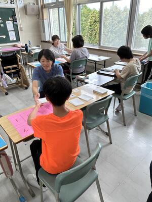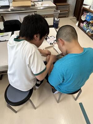 職場体験学習 投稿日時 : 2024/09/12 編集長 カテゴリ: 本日の中学部職場体験学習では、メモ帳作り、封筒作りなどの作業を行いました。 また、昨日のお菓子の箱作り作業を中学生が小学生に教え、いっしょに作業しました。 集中して、楽しみながら作業をしています。