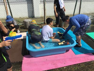 安全に十分に配慮しつつ、楽しく水と親しんでいます。