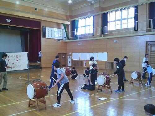 中学生は音楽で太鼓学習を行いました。練習を重ね、みんな上手になってきています。
