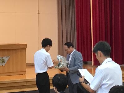 体育館に全校児童生徒が集まり、夏休み明け集会を実施しました。