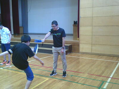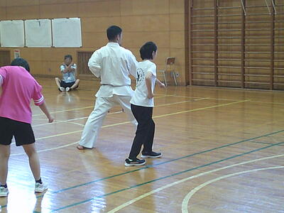 講師の方のご指導の下、「突き」や「舞え蹴り」「回し蹴り」「後ろ回し蹴り」のほか、連続して技を出す「型」も実施しました。