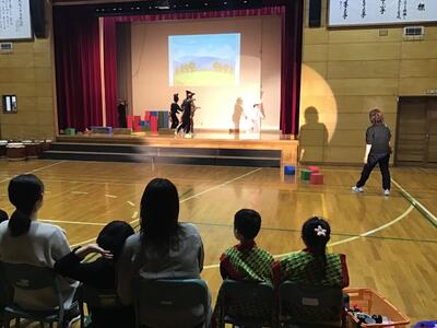 準備してきたことを、小学生は中学生の前で、中学生は小学生の前で発表します。