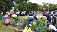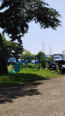 今日は少し気温も上がり、少し蒸し暑い中、一生懸命雑草を取る姿が見られました。