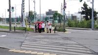 千歳高校のグラウンド脇を通って北ガス文化ホールの前の坂を下りてきました。