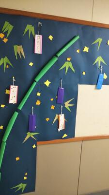 今日は7/7、七夕の掲示物は小学校中学年です。