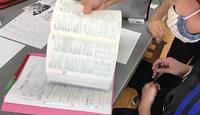 辞書を使いながら、自分の好きなものの表現の仕方を学んでいました。