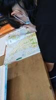 中学校社会で地図帳を活用した学習を行いました。ワークシートを活用しながら日本や世界各国の都市の位置を調る学習ですが、子どもたちは、回数を重ねるたびに調べるスピードも上がってくるなど、なかなかの集中力を発揮しながら、課題解決に向けて奮闘していました。