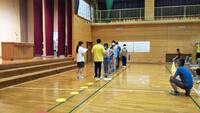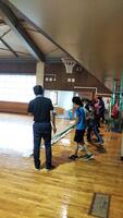 小学校高学年は旧体育館のモップがけ、一列に並んできれいにかけることができました。