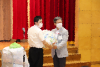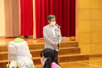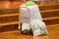 また、集会の後半では、千歳市社会福祉協議会の方にご来校いただき、ペットボトルキャップの贈呈式を行いました。協議会の方からは、リサイクルすることの大切さと本校児童生徒の協力への感謝のお気持ちを伝えていただきました。