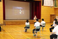 授業に先立って、夏休み後集会を実施し、校長から、①健康に気を付け、自分の命、友だちの命、家族の命を大切に思う気持ちを忘れないこと、②修学旅行や運動会など大きな行事を控えていますが、日頃の学習の成果を生かして、友だちや家族、地域の方に勇気を与えられるようながんばりを期待していることをお話ししました。