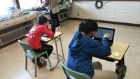 二つの式後、各学級では学活が行われていましたが、中にはタブレットの操作で学んだことを試している子どもたちもいました。