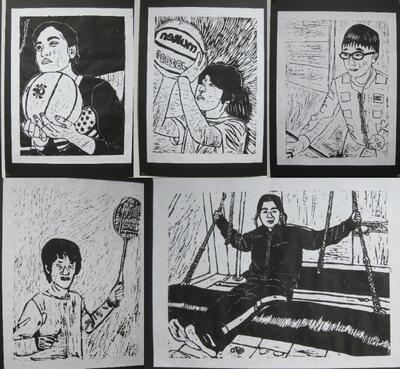 中学校美術の時間に版画に取り組んでいるグループがありますが、少しずつ作品ができあがり廊下に掲示されています。力作揃いです。