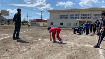 北進の中学生は、朝から体力づくりを