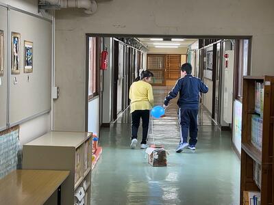 廊下で散歩などのお世話学習を