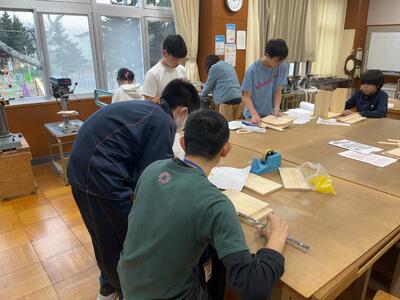 昨日の中学生の木工作業の様子。