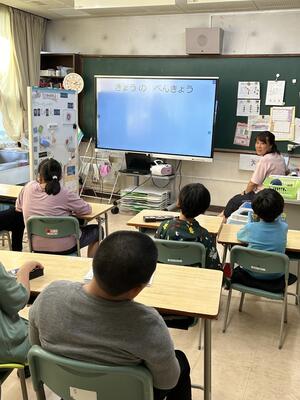 小学部では、月末に翌月の予定の確認などを行う学部集会を行っています。