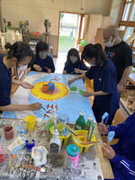 クラスの仲間同士賑やかに作業に取り組んでいました。