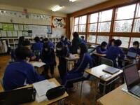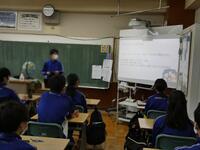 各クラスで、生徒会役員がスライドを使って「ネットいじめ」について説明しました。