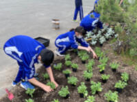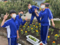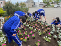 放課後、整美委員の皆さんと、数名のボランティア生徒によって、「花いっぱいコンクール」の花の苗が植えられました。