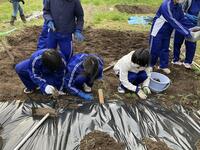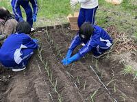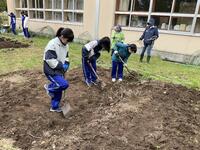 放課後、地域の方々の指導のもと、ふれあいサークルが畑づくりを行いました。