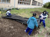 土を起こして雑草を取ってマルチシートを張ったり、畝(うね)を作って苗を植えたりしました。