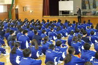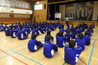 今日は4校時に2組チーム、5校時に1組チーム、6校時に3組チームが体育館でチーム結成式を行いました。